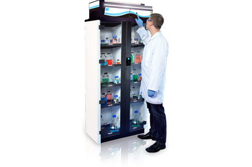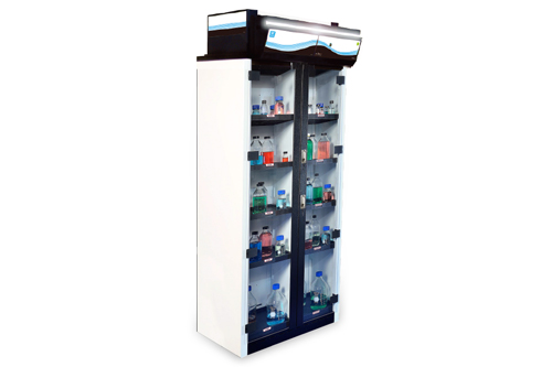 Erlab Storage CabinetsStoring and accessing your chemicals has never been safer. In addition to filtering the hazardous capors from the cabinet, the laboratory air is continuously cleaned.